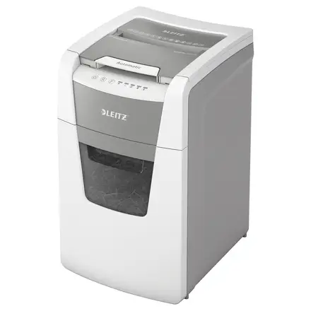 Fuldautomatisk makulator fra Leitz med unik tømningsfunktion uden rod. Så intelligent, at den roligt fungerer på egen hånd, bare indsæt din stak med papirer (inkl. hæfteklammer og papirclips), luk låget og fortsæt med andet arbejde. Ideel til kontorbrug. Højere sikkerhed og fremragende ydelse med denne anti-blokerings, stille autofeed-makulator med lang løbetid (30 min.) Makulerer automatisk 150 A4 ark (80 g) i sikkerhedsniveau P5 (2x15mm) mikromakuleringsstykker i én omgang ned i den generøse 44L beholder.